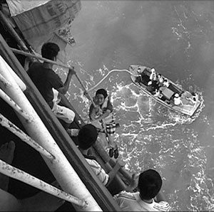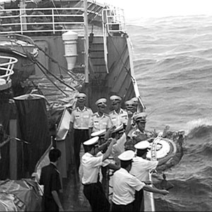 Con tàu khi ở bến trông đồ sộ là thế, nhưng khi ra khơi nó trở nên bé nhỏ giữa đại dương mênh mông. Biển động, tàu liên tục chao nghiêng, đồng nghiệp của tôi - nhân vật quan trọng, người có trọng trách ghi lại những hình ảnh chân thật, sắc nét, lúc này lại đang say sóng. Nhưng rồi, được khích lệ bởi hình ảnh các chiến sỹ hải quân vẫn cần mẫn, chỉn chu trong công việc và lời động viên của tôi, tay quay này đã gượng dậy cầm máy ghi hình. Và đây thực sự là một thử thách lớn với chàng cameramen. Cứ quay xong một đúp hình, tôi lại thấy đôi mắt của người đồng nghiệp... cứ trân trân, bởi những cơn say sóng đang chực ứ lên đầy cổ họng.