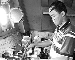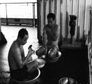 Cảnh tắm rửa đặc biệt chỉ có ở nhà giàn. Nước tắm xong dùng để tưới cây |