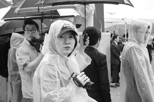 Phóng viên Khánh Vân "đội mưa" tác nghiệp tại Seoul, Hàn Quốc |