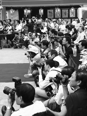 Phóng viên ảnh TTXVN cùng đồng nghiệp tác nghiệp trong dịp Đại lễ kỷ niệm 1000 năm Thăng Long - Hà Nội |