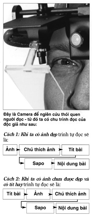 Theo kết quả nghiên cứu của Hiệp hội thiết kế báo quốc tế (có địa chỉ web là www.sdn.com) về thói quen của độc giả khi đọc báo (bằng cách cho độc giả đeo camera vào mắt và ghi lại mọi hình ảnh của mắt khi đọc báo): 75% độc giả nhìn theo trình tự ảnh - chú thích ảnh - tiêu đề - đoạn mở đầu - nội dung bài; 56% theo trình tự tiêu đề - ảnh - chú thích ảnh - đoạn mở đầu - nội dung bài. Bên phải phía trên 1/3 trang báo thường là nơi độc giả hay nhìn vào trước, sau đó chuyển từ từ sang bên trái là vị trí quan trọng nhất. Ở vị trí này, chúng ta đặt tin lớn nhất. Tại đây, độc giả bắt đầu đọc lướt trang báo. Một dòng tít "nổi bật hơn", một bức ảnh gây tranh cãi hay một tín hiệu màu sắc nét được đặt ở một số vị trí sẽ dễ dàng dẫn dắt đúng hoặc chỉ sai "đường đi" cho độc giả của bạn. Do vậy chúng ta - với trách nhiệm của một người thiết kế - với khả năng dẫn dắt độc giả chỉ bằng vài chiêu thức, kỹ thuật thiết kế có thể hướng độc giả vào những tin bài hay hoặc "dẫn sai" vào những bài kém quan trọng. Mà việc thường xuyên "đặt nhầm" những tin, bài không hay vào những vị trí quan trọng trên trang có thể sẽ khiến chúng ta mất dần độc giả.