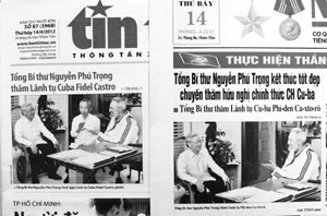 Ở bức ảnh bên trái (báo Tin Tức - TTXVN sử dụng) đăng nguyên bản sản phẩm do Ban BT Ảnh phát lên mạng, có đồng chí Đại sứ Việt Nam tại Cuba ở giữa ảnh. Bức ảnh bên phải (báo Nhân Dân sử dụng) đã tẩy đồng chí Đại sứ đi. Điều này không chỉ vi phạm nặng nề về bản quyền, mà còn vi phạm về đạo đức làm báo, đưa tin, đăng ảnh sai sự thật. Theo quy định tại Điều 15 của NĐ 47/CP, mức xử phạt với vi phạm này là từ 5 triệu - 15 triệu đồng.