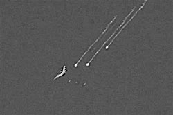 Ban đầu bức ảnh này được chú thích: "Một chiếc F-16 của Israel bắn ra các tên lửa trong cuộc không kích vào Nabatiyeh, miền nam Liban". Ngày 6/8/2006, một blogger có tên là Shackleford đã chỉ ra hai điểm nghi vấn: Thứ nhất, trong bức ảnh này không có tên lửa. Thứ hai, quan trọng hơn, bức ảnh đã được chỉnh sửa để tạo ra 3 vệt lửa kéo dài, trong khi trên thực tế chỉ có một.
