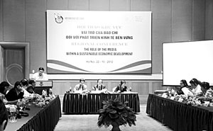 Mới đây, đại diện Ban Biên tập tin Kinh tế đã tham dự Hội thảo khu vực "Vai trò của báo chí đối với phát triển kinh tế bền vững" do Hội Nhà báo Việt Nam phối hợp với Văn phòng đại diện Quỹ Konrad Adenaur (của CHLB Đức) tại Việt Nam, tổ chức ở Hà Nội, với sự tham dự của các nhà báo và đại diện các cơ quan quản lý báo chí đến từ bốn nước thuộc Tiểu vùng sông Mê Công (Việt Nam, Lào, Campuchia và Thái Lan). NSTT xin trích giới thiệu tham luận của Ban Biên tập tin Kinh tế tại hội thảo này.