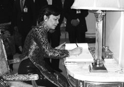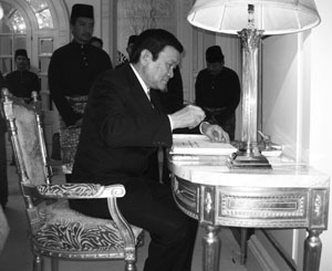 Rất vui lđ chỉ với chiếc máy quay du lịch, các phỉng viân Phân xã Kuala Lumpur lđ nhỉm truyền hình duy nhất ghi được hình ảnh Chủ tịch nước Trương Tấn Sang căng phu nhân ký sổ lưu niệm tại Hođng cung Malaysia. |