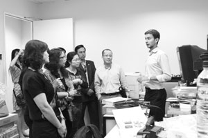 Nhà báo Phạm Thị Bình (thứ hai bên trái) trong chuyến học hỏi kinh nghiệm làm truyền hình của đồng nghiệp Singapore |