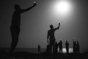 Bức ảnh của ông John Stanmeyer chụp cảnh những người di cư châu Phi đang giơ cao chiếc điện thoại của họ lên bầu trời đêm, mong bắt được một chút tín hiệu điện thoại để gọi về nhà trong khi họ đang trên đường tìm kiếm một cuộc sống tốt đẹp hơn ở châu Âu (ảnh 1).