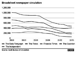 | Sự 'tụt dốc' của những tờ báo hàng đầu nước Anh |