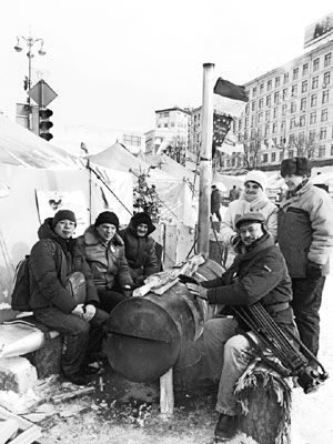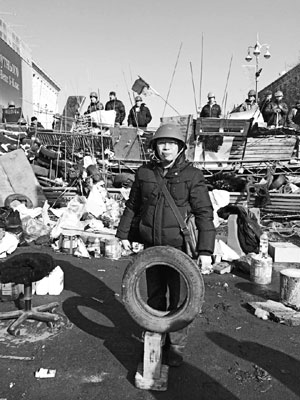 PV Duy Trinh trước chiến lũy của người biểu tình tại quảng trường Maidan, Kiev tháng 2/2014 |