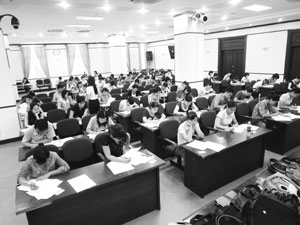 Các thi sinh thực hiện bài thi nghiệp vụ tại đợt thi tuyển PV, BTV năm 2011 |