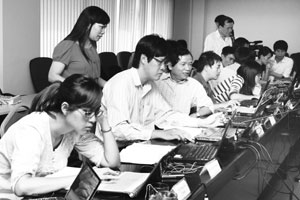 Các khóa đào tạo bồi dưỡng nghiệp vụ thường xuyên được tổ chức, tạo điều kiện cho đội ngũ PV tiếp cận với các loại hình thông tin mới, đáp ứng yêu cầu của ngành trong giai đoạn hiện nay. Trong ảnh: Khóa đào tạo về thông tin truyền hình cho các PV Phân xã khu vực phía Nam, tháng 4/2012 |