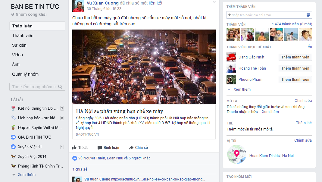 | Group “Bạn bè Tin tức” hiện có khoảng 1.500 thành viên |