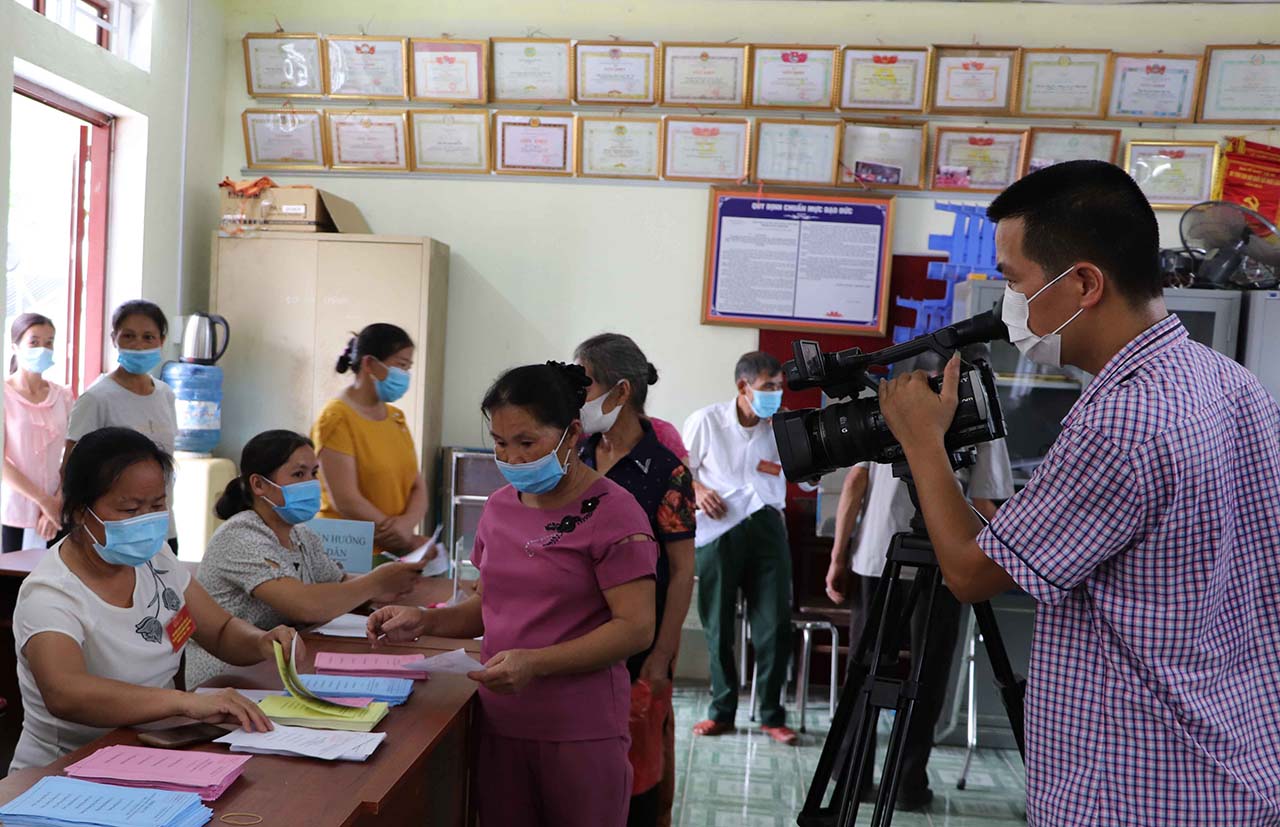 | Trưởng CQTT Cao Bằng Nông Văn Đạt tác nghiệp trong ngày bầu cử đại biểu Quốc hội khóa XV và đại biểu HĐND các cấp nhiệm kỳ 2021-2026, 23/ 5/2021 |