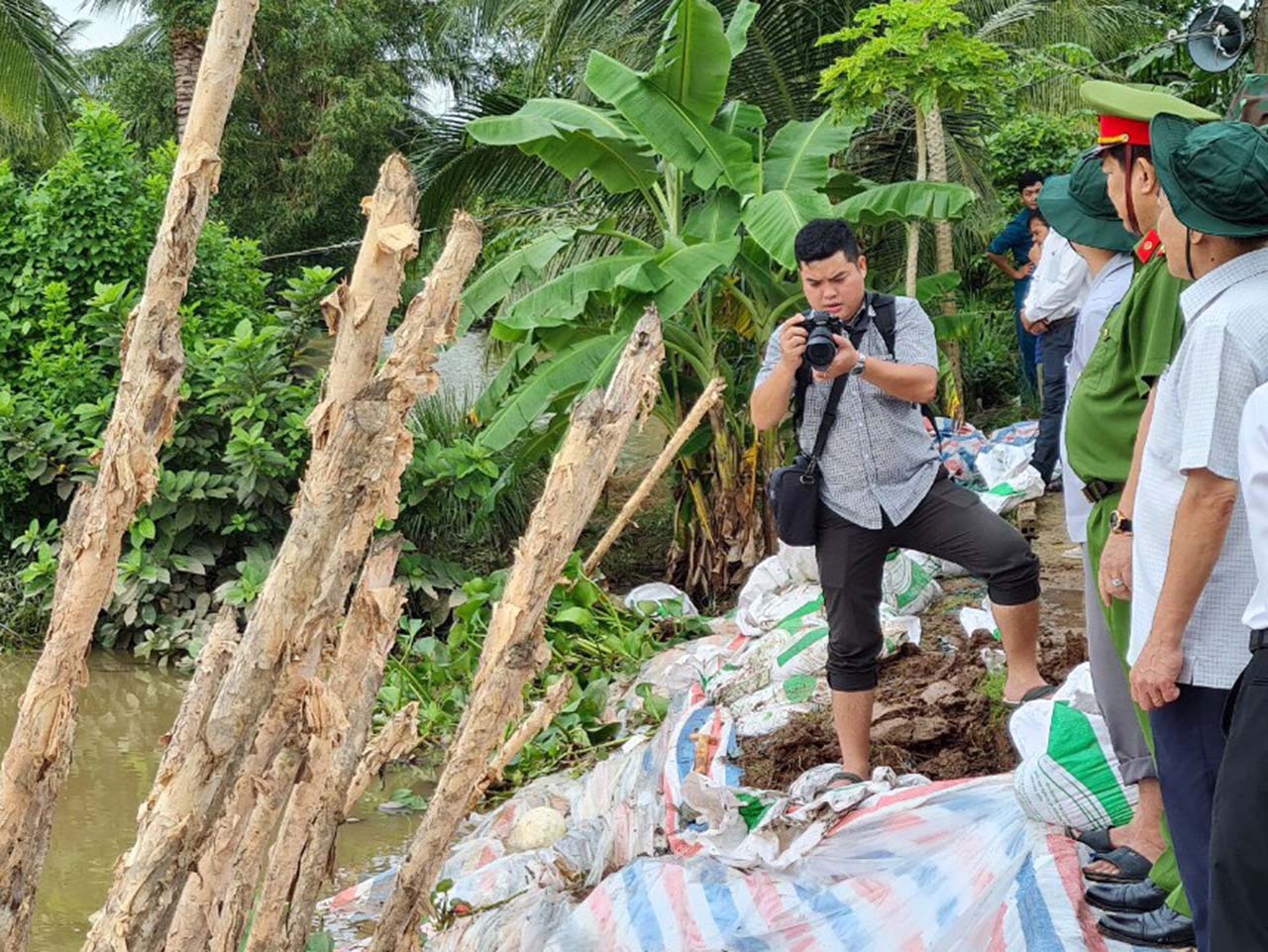 | Phóng viên Nguyễn Thanh Liêm phản ánh công tác kiểm tra các tuyến đê bao xung yếu ở Cồn Sơn, quận Bình Thủy, TP. Cần Thơ, tháng 10/2022 |