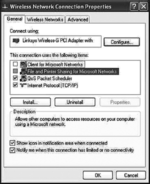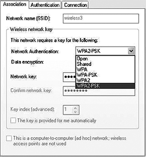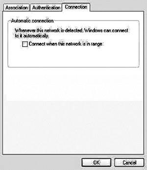 Nếu bạn đang dùng SP2, cấu hình các mạng không dây thành không tự động kết nối bằng cách vào phần "Connection" bên dưới Wireless Properties.