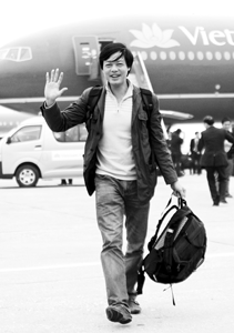 | Phóng viên Nhan Sáng tại sân bay Nội Bài, trở về từ Tuynidi |