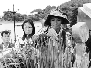 3. Các đại biểu dâng hương và thả hoa đăng tại bến Vũng Rô, Phú Yên
