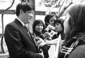 Phóng viên Phương Liên (thứ hai bên phải) phỏng vấn Thứ trưởng Bộ Y tế Nguyễn Thanh Long |