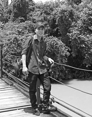 | PV Võ Mạnh Hùng trên đường đi tác nghiệp |