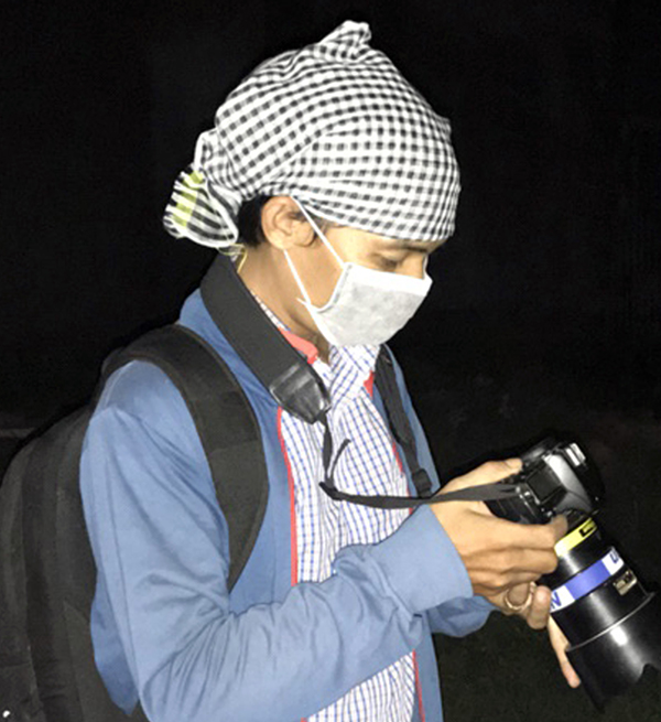 | Phóng viên ảnh Mạnh Linh với trang phục bảo hộ khi tác nghiệp |