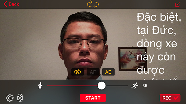 2. Không dừng lại ở việc chạy các ứng dụng nhắc chữ, bạn hoàn toàn có thể sử dụng điện thoại di động để dẫn hiện trường. Phiên bản trả phí của ứng dụng Teleprompter cho phép bạn dẫn hiện trường bằng camera trước của điện thoại thông minh, với chữ chạy trên màn hình để bạn có thể đọc dễ dàng.