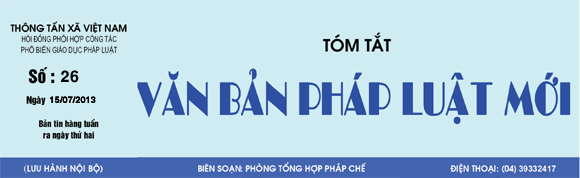 Tóm tắt Văn bản pháp luật mới: Số 26 ngày 15/7/2013 của Hội đồng phối hợp công tác phổ biến giáo dục pháp luật - Thông tấn xã Việt Nam