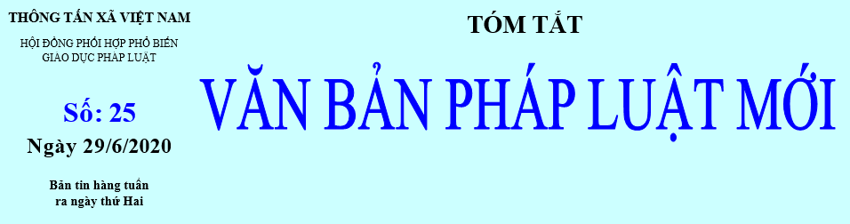 Phổ biến giáo dục Pháp luậtBản tin văn bản Pháp luật Tóm tắt Văn bản pháp luật mới: Số 25 ngày 29/6/2020 của Hội đồng phối hợp phổ biến, giáo dục pháp luật - TTXVN Thứ ba, 30/06/2020 15:17 Bấm để xem Phòng Tổng hợp - Pháp chếThường trực Hội đồng phối hợp phổ biến, giáo dục pháp luật TTXVN