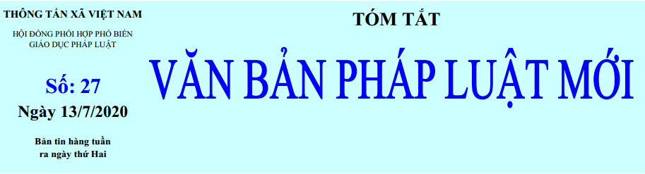 Tin cùng chuyên mục Tóm tắt Văn bản pháp luật mới: Số 26 ngày 06/7/2020 của Hội đồng phối hợp phổ biến, giáo dục pháp luật - TTXVN06/07/2020 10:09 Tóm tắt Văn bản pháp luật mới: Số 25 ngày 29/6/2020 của Hội đồng phối hợp phổ biến, giáo dục pháp luật - TTXVN30/06/2020 15:17 Tóm tắt Văn bản pháp luật mới: Số 24 ngày 22/6/2020 của Hội đồng phối hợp công tác phổ biến giáo dục pháp luật - Thông tấn xã Việt Nam23/06/2020 10:03 Tóm tắt Văn bản pháp luật mới: Số 23 ngày 15/6/2020 của Hội đồng phối hợp công tác phổ biến giáo dục pháp luật - Thông tấn xã Việt Nam16/06/2020 09:54 Tóm tắt Văn bản pháp luật mới: Số 22 ngày 08/6/2020 của Hội đồng phối hợp công tác phổ biến giáo dục pháp luật - Thông tấn xã Việt Nam09/06/2020 15:06 Tóm tắt Văn bản pháp luật mới: Số 21 ngày 01/6/2020 của Hội đồng phối hợp công tác phổ biến giáo dục pháp luật - Thông tấn xã Việt Nam02/06/2020 15:06