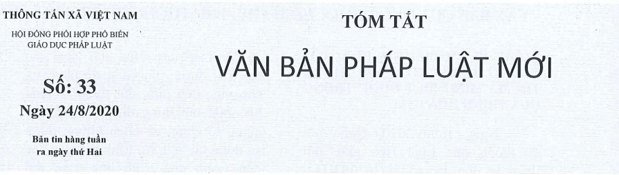 Tóm tắt Văn bản pháp luật mới: Số 33 ngày 24/8/2020 của Hội đồng phối hợp phổ biến, giáo dục pháp luật - TTXVN