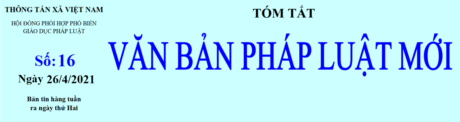 Tóm tắt Văn bản pháp luật mới: Số 16 ngày 26/4/2021 của Hội đồng phối hợp phổ biến, giáo dục pháp luật - TTXVN