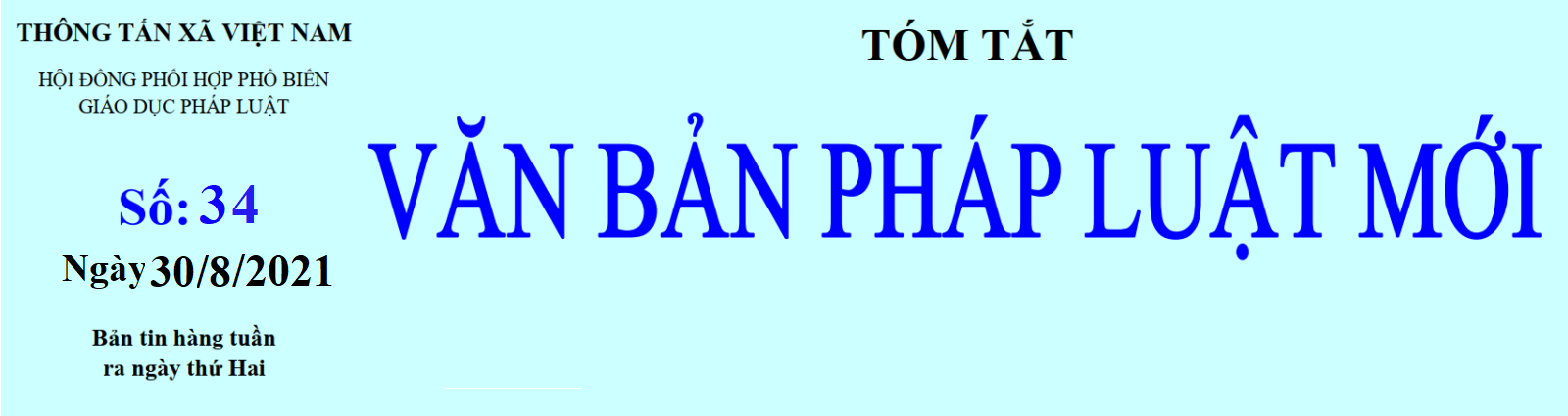 Tóm tắt Văn bản pháp luật mới: Số 34 ngày 01/9/2021 của Hội đồng phối hợp phổ biến, giáo dục pháp luật - TTXVN
