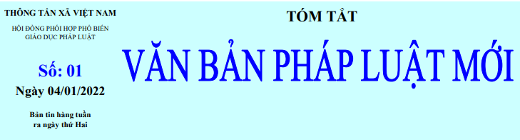 Tin cùng chuyên mục Tóm tắt Văn bản pháp luật mới: Số 06 ngày 14/02/2022 của Hội đồng phối hợp phổ biến, giáo dục pháp luật - TTXVN14/02/2022 14:05 Tóm tắt Văn bản pháp luật mới: Số 05 ngày 07/02/2022 của Hội đồng phối hợp phổ biến, giáo dục pháp luật - TTXVN07/02/2022 14:06 Tóm tắt Văn bản pháp luật mới: Số 04 ngày 24/01/2022 của Hội đồng phối hợp phổ biến, giáo dục pháp luật - TTXVN24/01/2022 10:49 Tóm tắt Văn bản pháp luật mới: Số 03 ngày 17/01/2022 của Hội đồng phối hợp phổ biến, giáo dục pháp luật - TTXVN17/01/2022 10:16 Tóm tắt Văn bản pháp luật mới: Số 02 ngày 10/01/2022 của Hội đồng phối hợp phổ biến, giáo dục pháp luật - TTXVN10/01/2022 16:53 Tóm tắt Văn bản pháp luật mới: Số 01 ngày 04/01/2022 của Hội đồng phối hợp phổ biến, giáo dục pháp luật - TTXVN04/01/2022 14:47