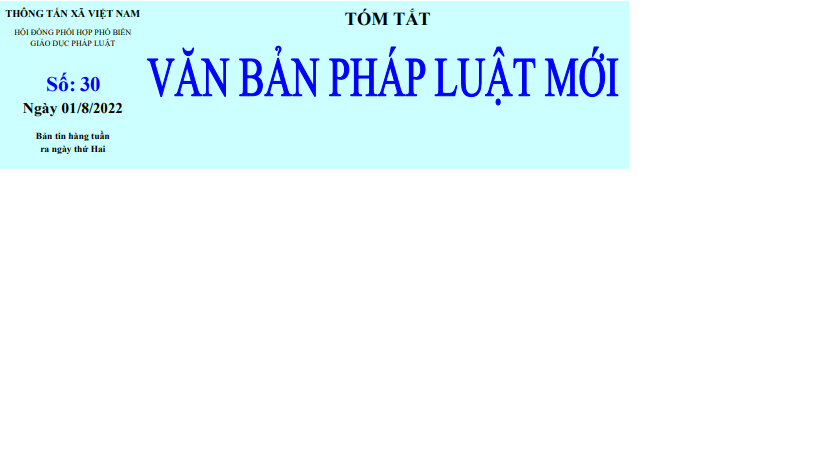 Phổ biến giáo dục Pháp luậtBản tin văn bản Pháp luật Tóm tắt Văn bản pháp luật mới: Số 30 ngày 01/8/2022 của Hội đồng phối hợp phổ biến, giáo dục pháp luật - TTXVN Thứ hai, 01/08/2022 15:11 Xin mời bấm vào ảnh để xem nội dung: Phòng Tổng hợp - Pháp chếThường trực Hội đồng phối hợp phổ biến, giáo dục pháp luật TTXVN