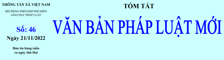 Tin cùng chuyên mục Tóm tắt Văn bản pháp luật mới: Số 51 ngày 26/12/2022 của Hội đồng phối hợp phổ biến, giáo dục pháp luật - TTXVN28/12/2022 09:09 Tóm tắt Văn bản pháp luật mới: Số 50 ngày 19/12/2022 của Hội đồng phối hợp phổ biến, giáo dục pháp luật - TTXVN22/12/2022 09:04 Tóm tắt Văn bản pháp luật mới: Số 49 ngày 12/12/2022 của Hội đồng phối hợp phổ biến, giáo dục pháp luật - TTXVN14/12/2022 08:58 Tóm tắt Văn bản pháp luật mới: Số 48 ngày 05/12/2022 của Hội đồng phối hợp phổ biến, giáo dục pháp luật - TTXVN05/12/2022 14:15 Tóm tắt Văn bản pháp luật mới: Số 47 ngày 28/11/2022 của Hội đồng phối hợp phổ biến, giáo dục pháp luật - TTXVN29/11/2022 14:34 Tóm tắt Văn bản pháp luật mới: Số 46 ngày 21/11/2022 của Hội đồng phối hợp phổ biến, giáo dục pháp luật - TTXVN21/11/2022 14:02