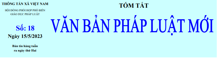 Tin cùng chuyên mục Tóm tắt Văn bản pháp luật mới: Số 17 ngày 08/5/2023 của Hội đồng phối hợp phổ biến, giáo dục pháp luật - TTXVN09/05/2023 09:46 Tóm tắt Văn bản pháp luật mới: Số 16 ngày 24/4/2023 của Hội đồng phối hợp phổ biến, giáo dục pháp luật - TTXVN08/05/2023 08:18 Tóm tắt Văn bản pháp luật mới: Số 15 ngày 19/4/2023 của Hội đồng phối hợp phổ biến, giáo dục pháp luật - TTXVN19/04/2023 10:38 Tóm tắt Văn bản pháp luật mới: Số 14 ngày 10/4/2023 của Hội đồng phối hợp phổ biến, giáo dục pháp luật - TTXVN13/04/2023 08:42 Tóm tắt Văn bản pháp luật mới: Số 13 ngày 03/4/2023 của Hội đồng phối hợp phổ biến, giáo dục pháp luật - TTXVN03/04/2023 16:36 Tóm tắt Văn bản pháp luật mới: Số 12 ngày 27/3/2023 của Hội đồng phối hợp phổ biến, giáo dục pháp luật - TTXVN27/03/2023 14:10