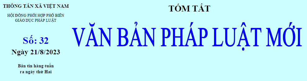 Tóm tắt Văn bản pháp luật mới: số 32 ngày 21/8/2023 của Hội đồng phối hợp Phổ biến giáo dục pháp luật TTXVN