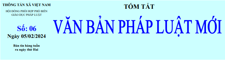 Tin cùng chuyên mục Tóm tắt Văn bản pháp luật mới: số 11 ngày 18/3/2024 của Hội đồng phối hợp Phổ biến giáo dục pháp luật TTXVN19/03/2024 13:53 Tóm tắt Văn bản pháp luật mới: số 10 ngày 11/3/2024 của Hội đồng phối hợp Phổ biến giáo dục pháp luật TTXVN11/03/2024 16:34 Tóm tắt Văn bản pháp luật mới: số 09 ngày 04/3/2023 của Hội đồng phối hợp Phổ biến giáo dục pháp luật TTXVN04/03/2024 17:12 Tóm tắt Văn bản pháp luật mới: số 08 ngày 26/02/2024 của Hội đồng phối hợp Phổ biến giáo dục pháp luật TTXVN26/02/2024 13:53 Tóm tắt Văn bản pháp luật mới: số 07 ngày 19/02/2024 của Hội đồng phối hợp Phổ biến giáo dục pháp luật TTXVN19/02/2024 16:45 Tóm tắt Văn bản pháp luật mới: số 06 ngày 05/02/2024 của Hội đồng phối hợp Phổ biến giáo dục pháp luật TTXVN14/02/2024 10:33